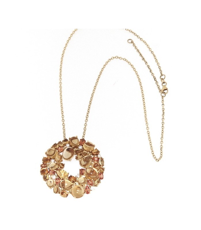 GOLD RING WITH DIAMONDS, SAPPHIRES AND CITRINES - ROBERTO COIN - 0375052