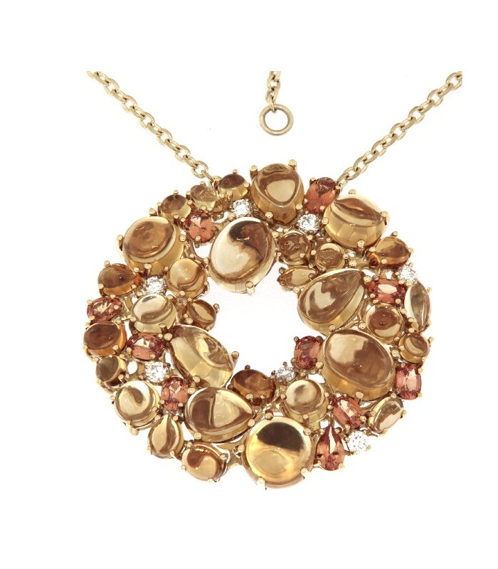Roberto Coin 18k yellow gold ring, from the Fantasia collection with white Diamonds, orange Sapphires and Citrines. White diamonds: 0.53 cts Citrines and orange sapphires: 7.52 cts An exclusive ring, like all Roberto...