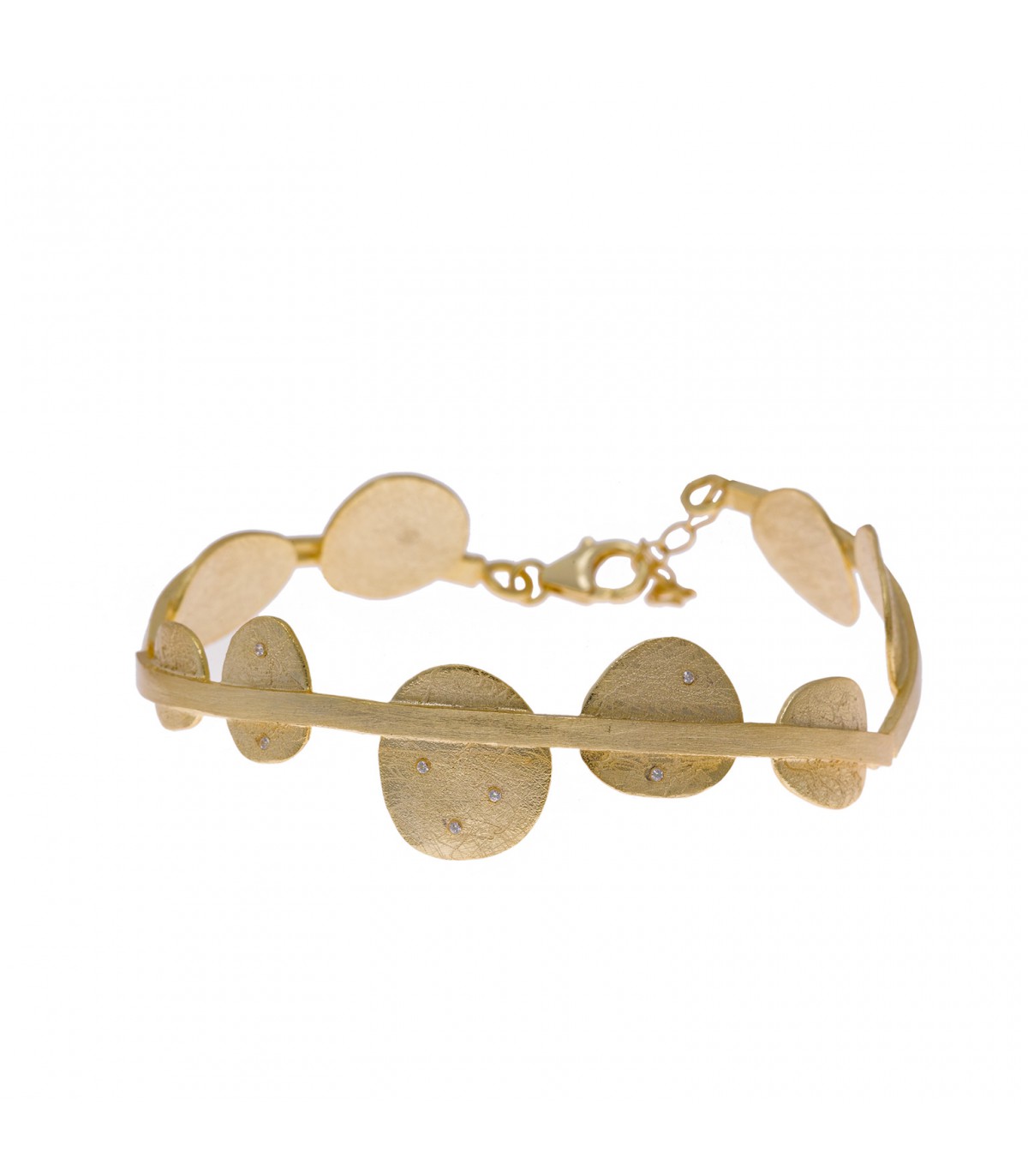 Bracelet in 925 Sterling Silver mls, 18k yellow gold plated satin, with small zircons. It highlights the silky touch of its finish and its special gold. This semi-rigid bracelet adapts perfectly to the wrist. It has a...