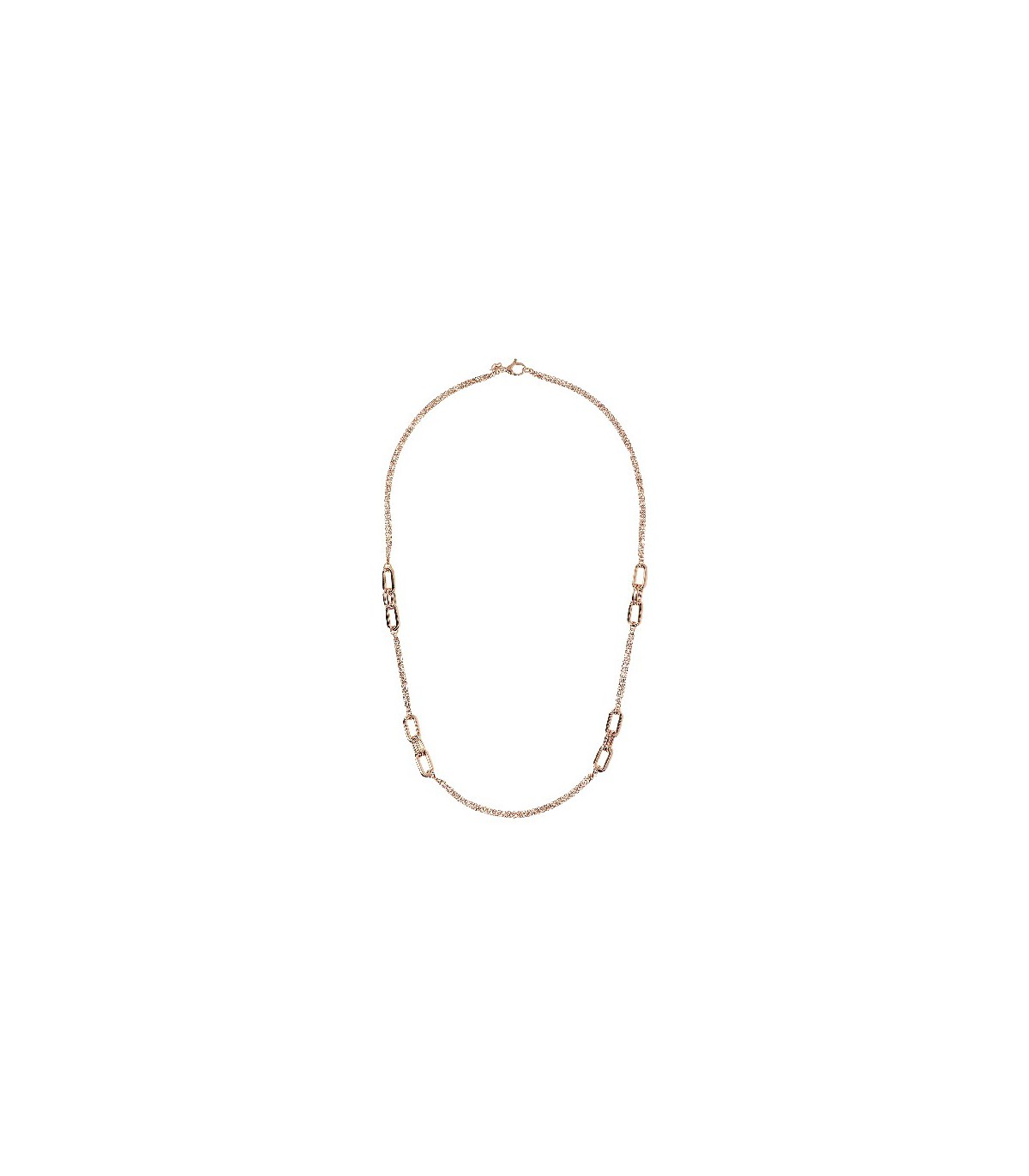 Necklace with authentic 18k rose gold, bronze gold plated. Elegant combination of triple thin chain and oval links, length 90cm. Matching earrings are available on our website.