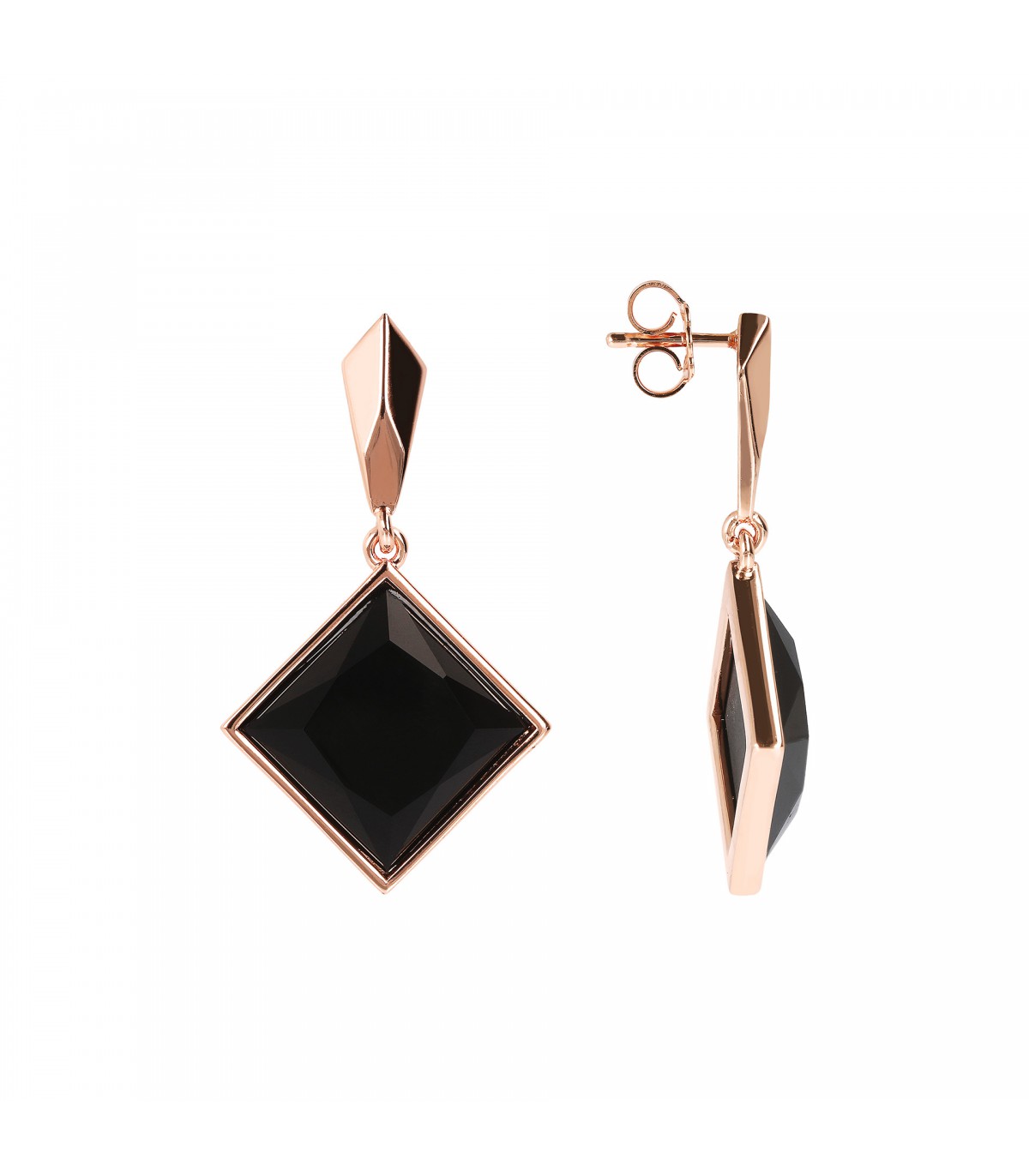Necklace with patented 18-carat rose gold plated Golden Rose alloy on bronze. A unique and contemporary design with square black onyx. Length 40 + 5cm. A jewel from the Incanto collection that will elegantly enrich all your outfits.