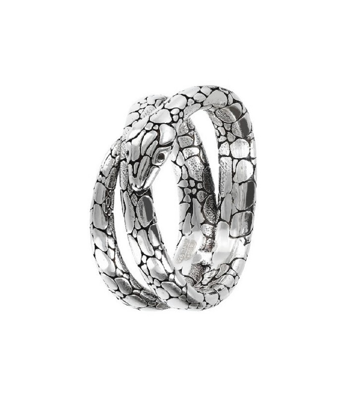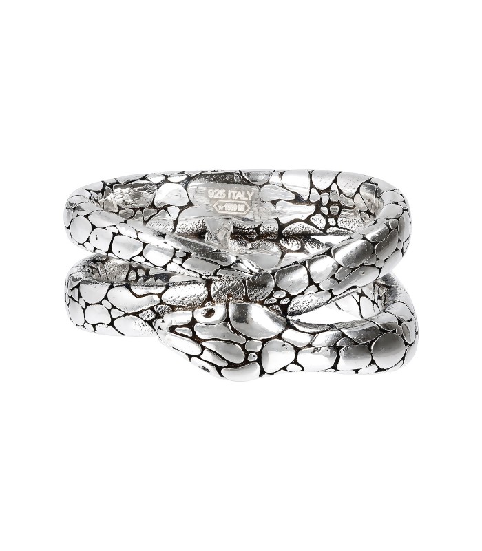 Sterling silver ring, 7mm wide.Special design thanks to an ink texture technique reminiscent of snakeskin.Sizes: 24-26For other sizes, please contact us.