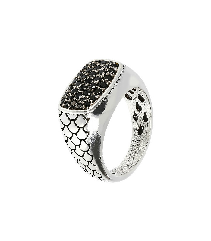 Anillo en Plata de Ley 25 mls de 7mm de ancho. Diseño especial gracias a la técnica de textura de tinta recordando la piel de serpiente.Tallas: 24-26Para otras medidas, contactar con nosotros.