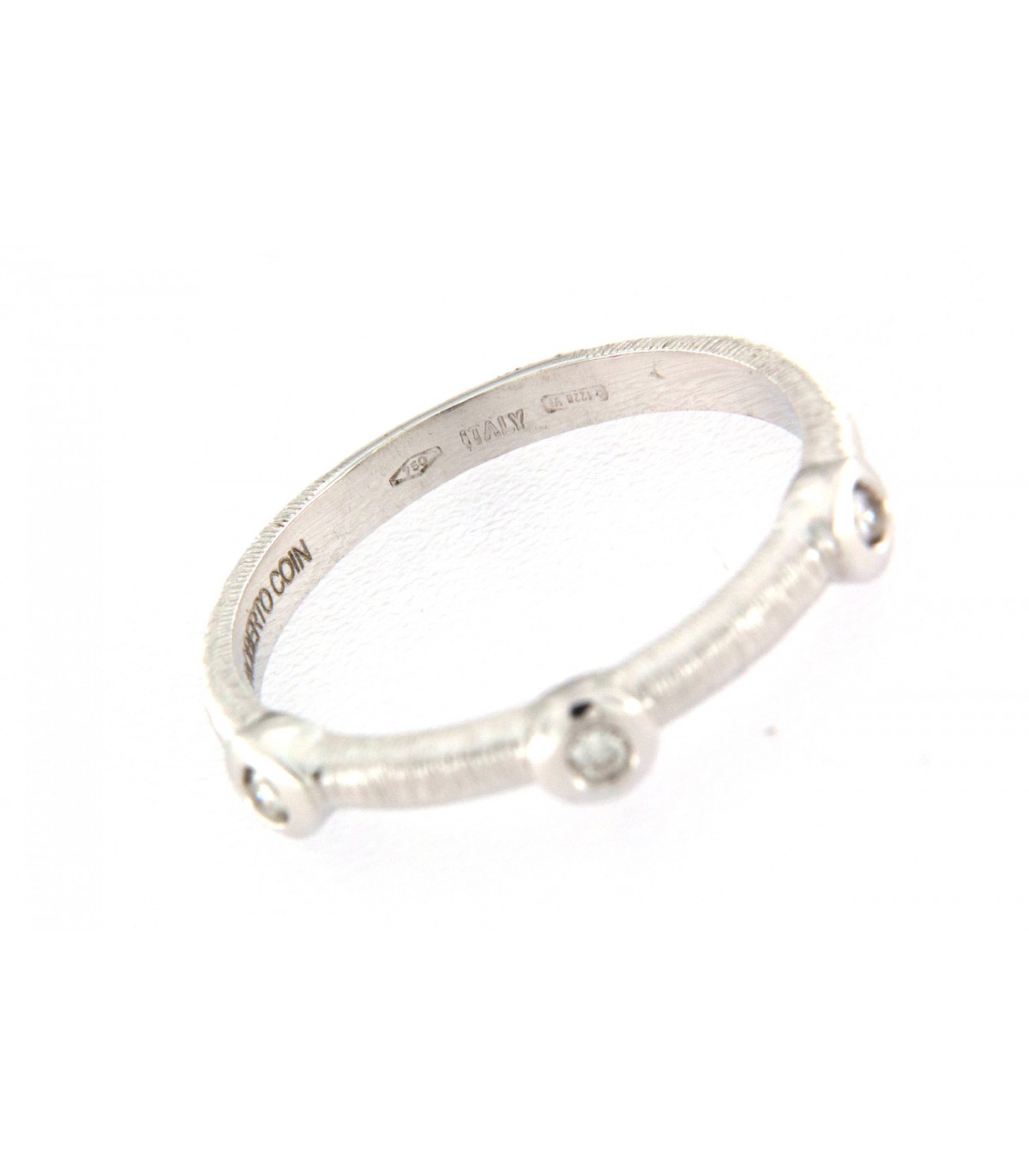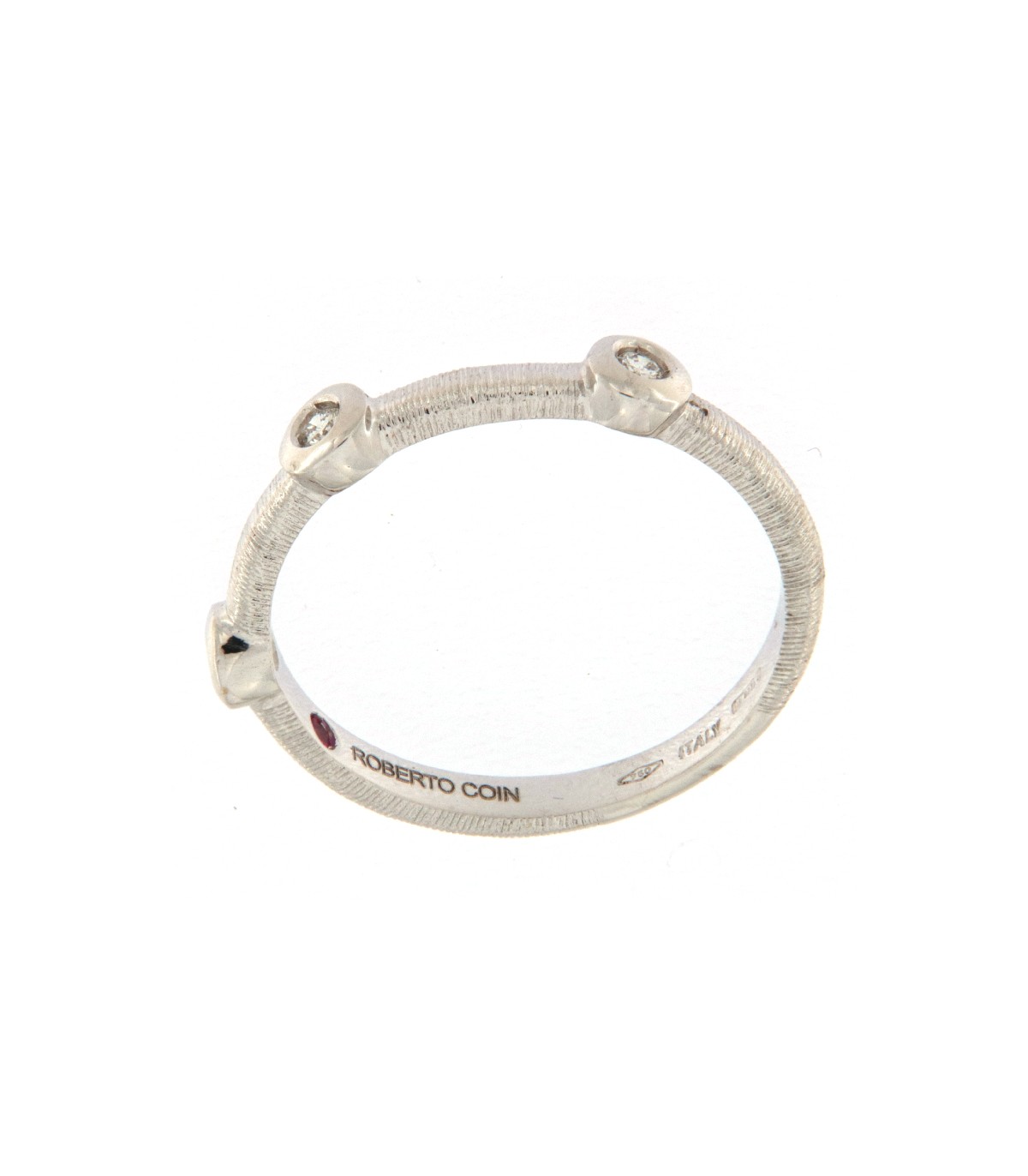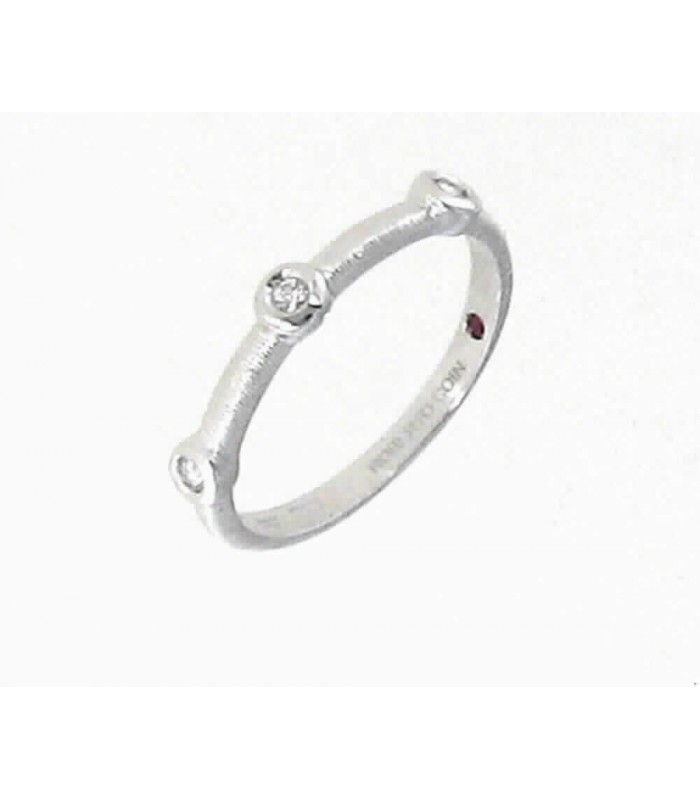 Collar en Oro blanco satinado de 18k de ROBERTO COIN, Colección Granada, con un colgante circular ornado de 4 Diamantes blancos, talla brillante engarzados en chaton.Diamantes: 0,07 quilates. La cadena es de 45 cm,...