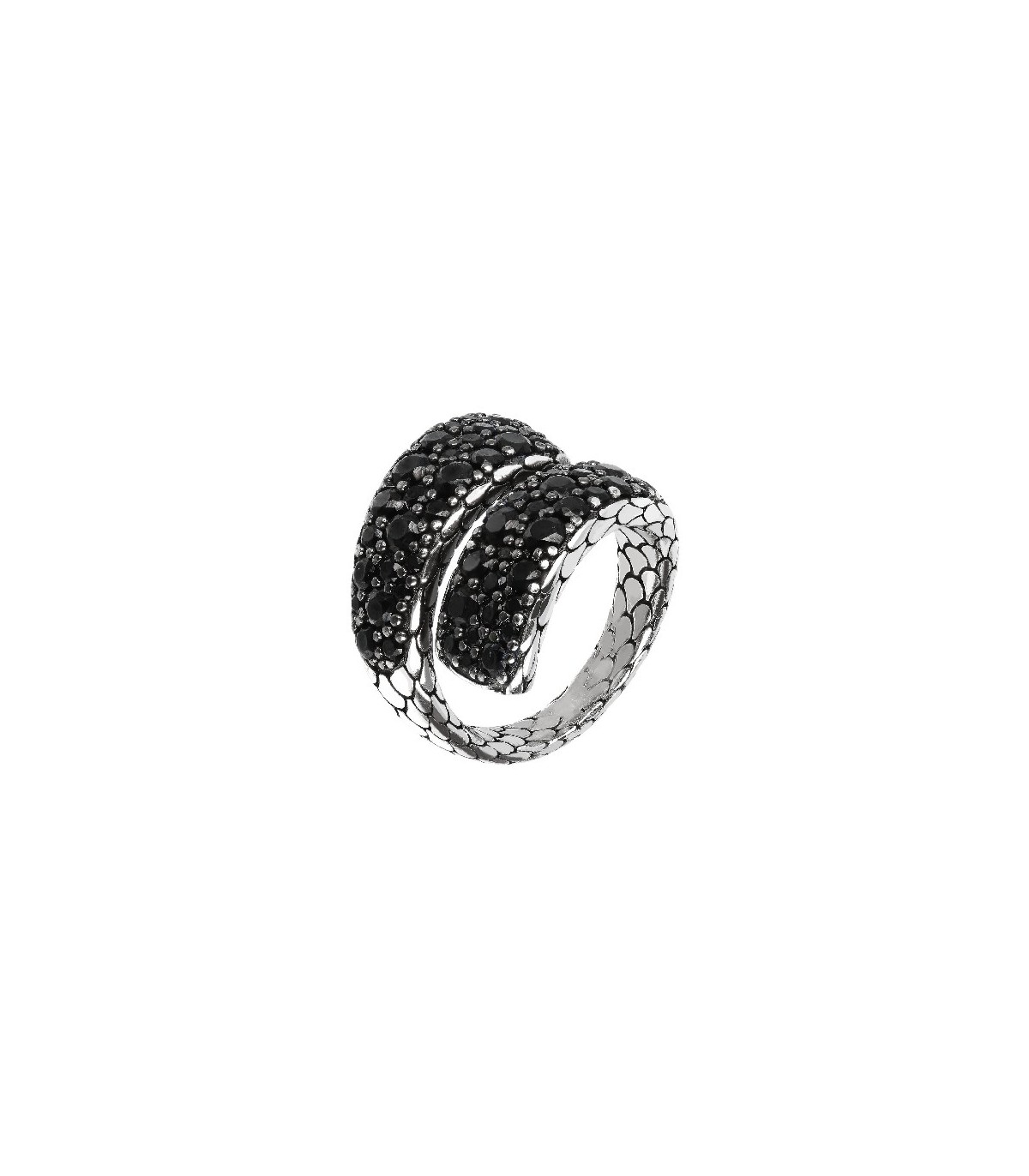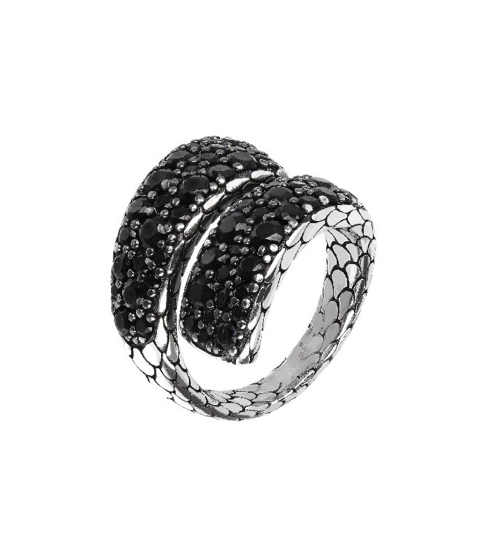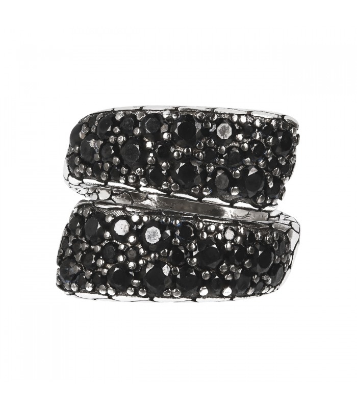 Colgante en Plata de Ley 925 mls. Las superficies trabajadas meticulosamente por ambos lados, se fusionan con un pavé refinado de Espinela negra. Tamaño 18 x 30mm.