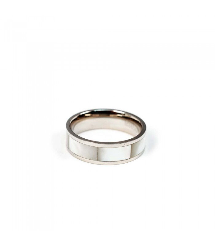 ANILLO UNISEX CON MADRE PERLA. MATERIAL ANTIALÉRGICO: ACERO 316L. ANCHO 12 mm.TALLAS DISPONIBLES: 20. 27