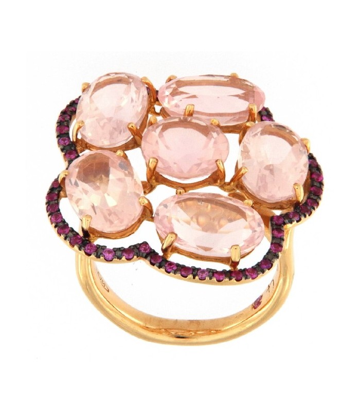 COLLAR DE ORO ROSA 18K CON CUARZO ROSA & ZAFIRO ROSA - CARBERONIA - 0403058