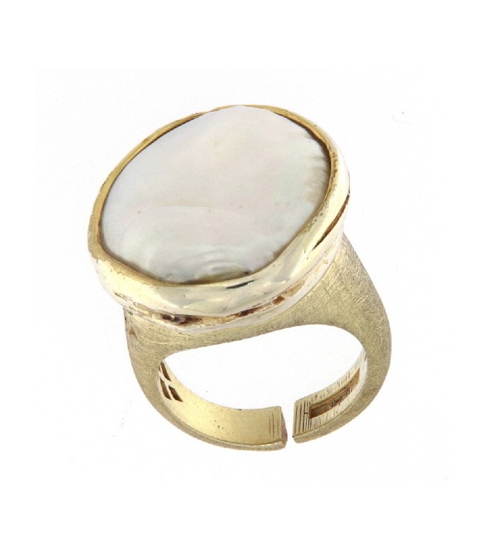 ANILLO EN PLATA DE LEY 925 CHAPADO ORO CON PERLA BARROCA DE AGUA DULCE - CHANTALINE - PAGD