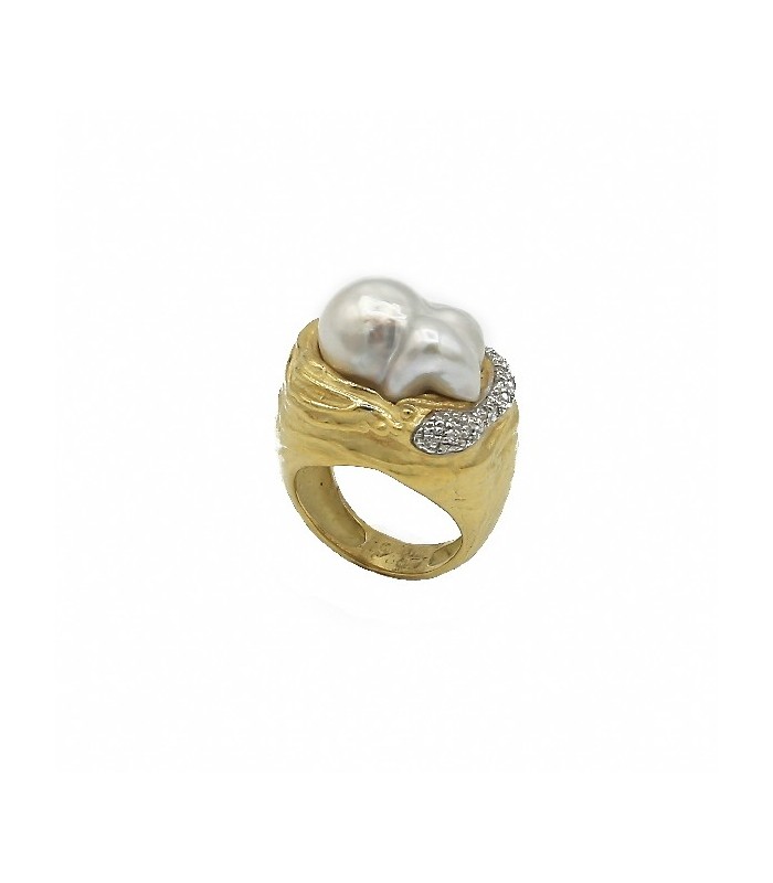 Colgante en oro amarillo 750 mls de la firma española Isabelino, con una Perla cultivada de agua dulce barroca , de muy buena calidad, con un excellente Lustre o Oriente (iridiscencia), muy brillante.Un pave de...