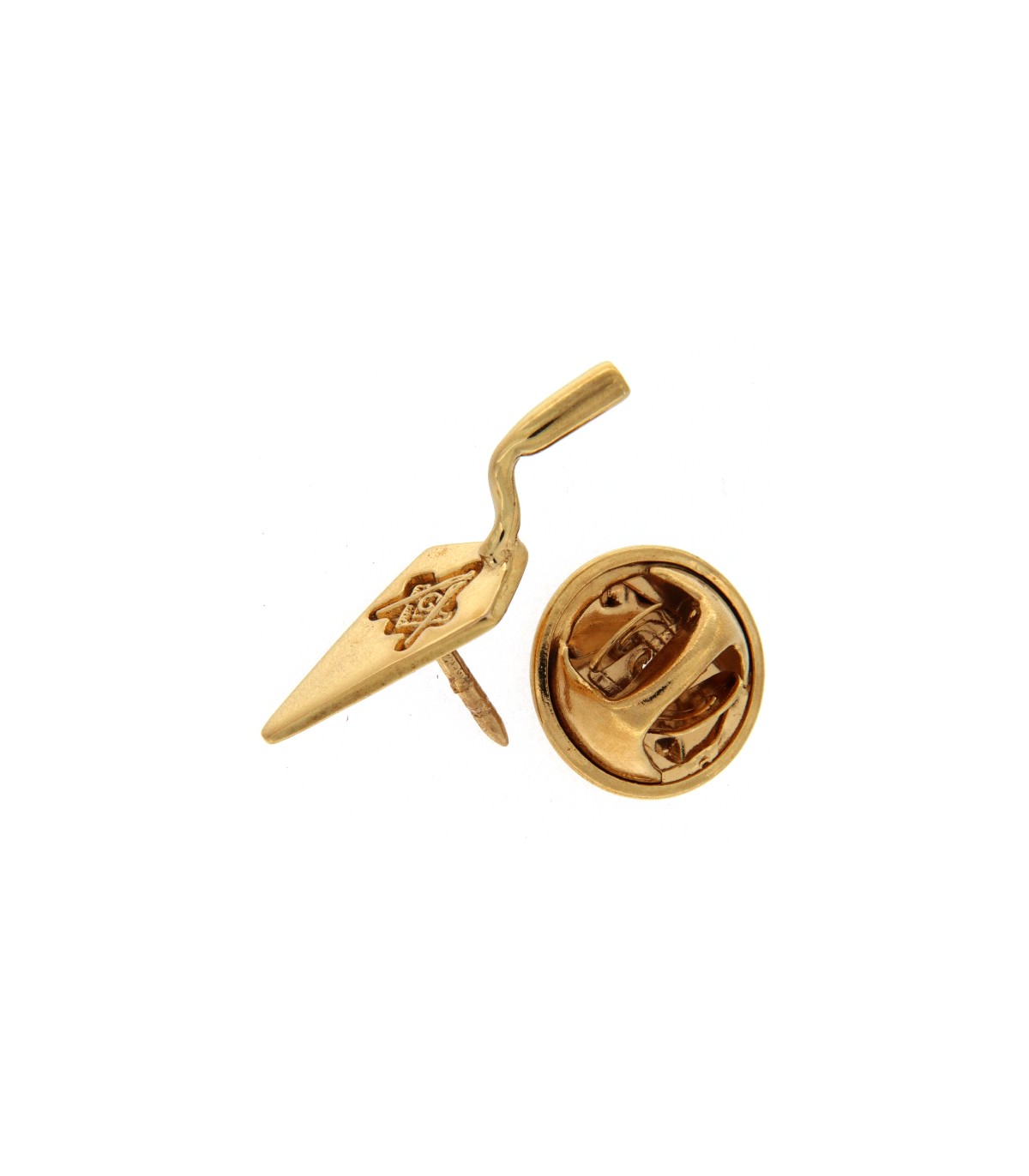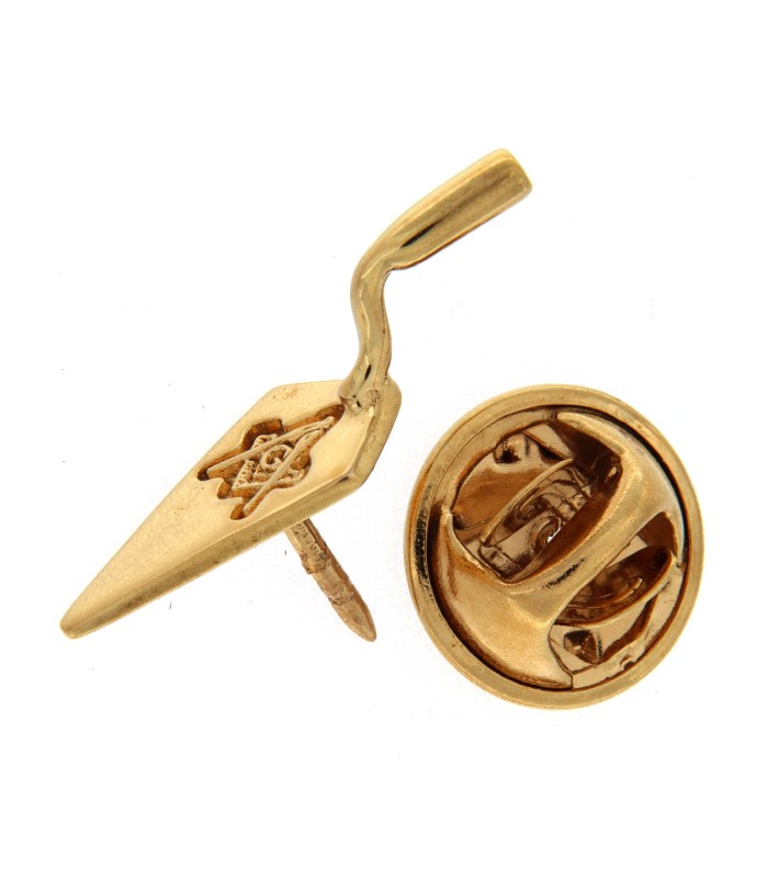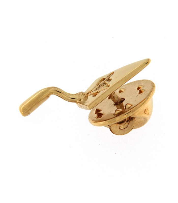 - Este PIN representando la Pala de albañil o Cuchara del Amor, la herramienta del Maestro, esta elaborado de plata de ley 925 chapado oro amarillo 18k, 5 micras que lo protege, evitando que se ennegrezcan con el tiempo.