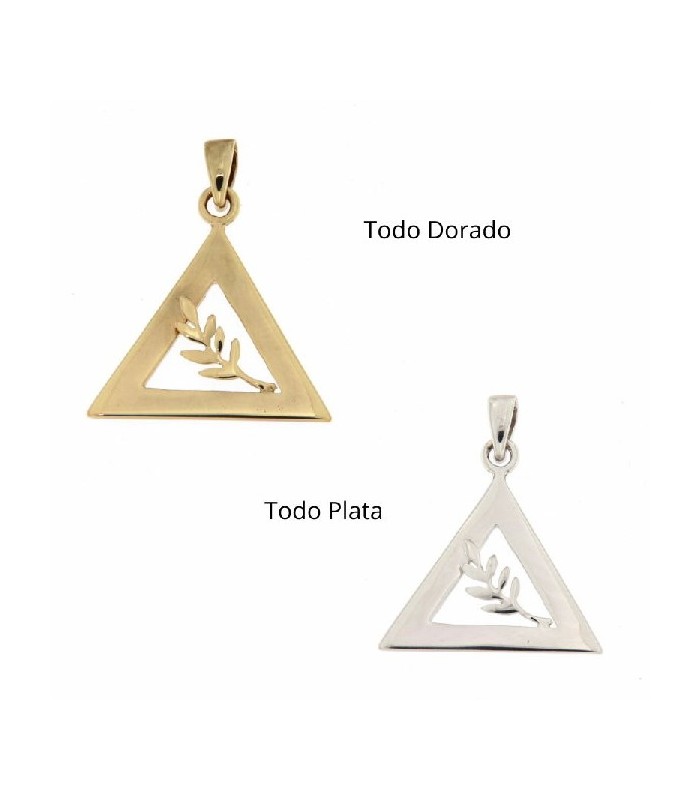 - Es de plata de Ley 925 y está compuesto por el triangulo equilátero en plata con baño oro o de rodio con una rama de acacia en su centro. Atrévete a llevarlo, solo los iniciados entenderán su significado profundo.