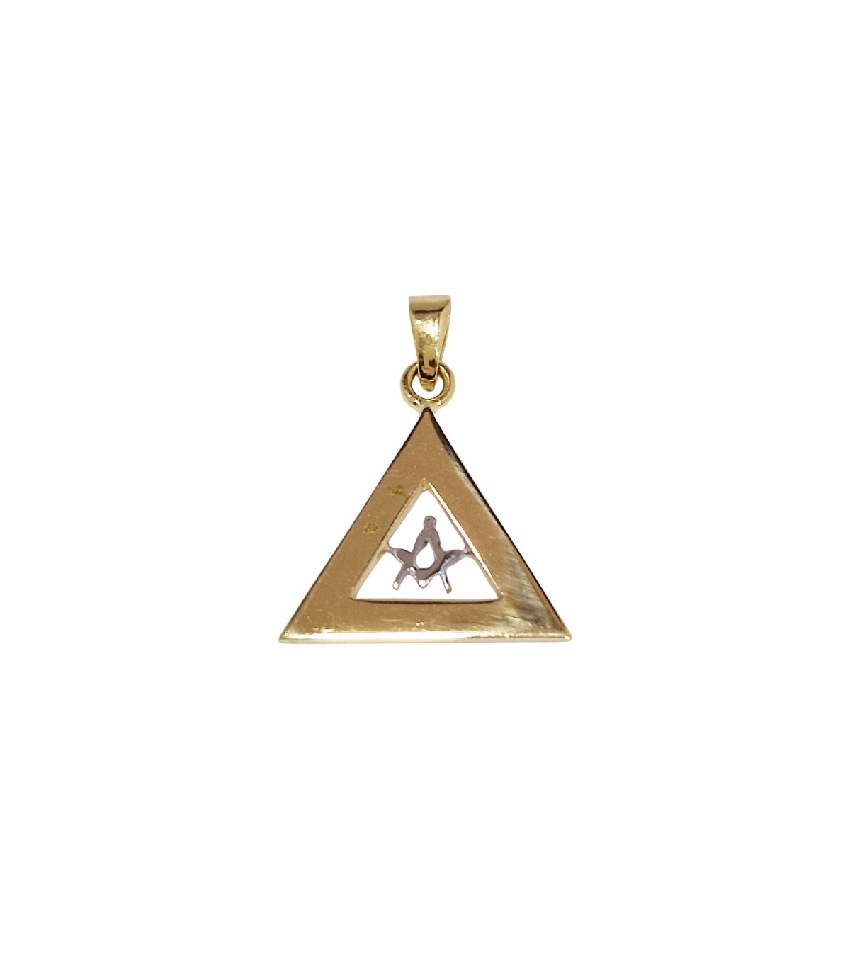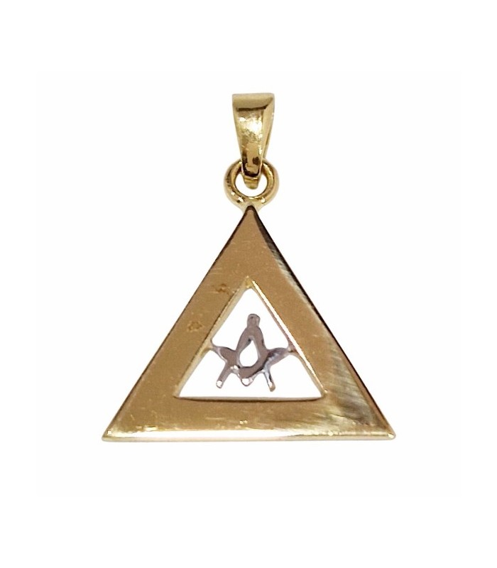 COLGANTE TRIANGULAR DE ORO 750 MLS BICOLOR CON ESCUADRA y COMPÁS - 131012