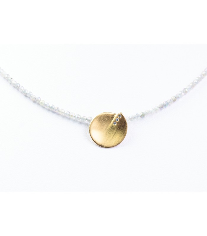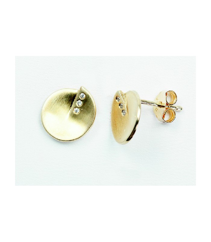 Pendientes en oro amarillo 9 k con diamantes. Sencillo disco, con 3 diamantes, cierre presión. Dentro de los clasicos, pero con un diseño inovador. A combinar con el collar a juego disponible en nuestra web.