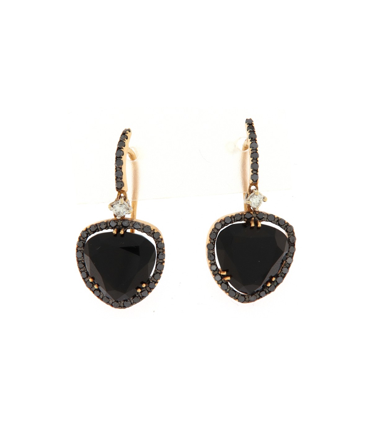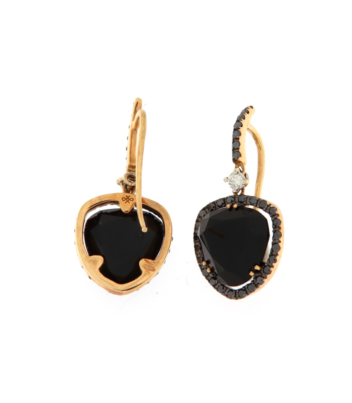 Collar de oro rosa 750 mls de la firma española Carberonia, colección Pensami, con diamantes negros y ónix negro talla corazón.Peso oro 5,07 gr Diamantes Negros 0,20 Quilates Ónix 3,55 Quilates Cadena de 40 cm con...