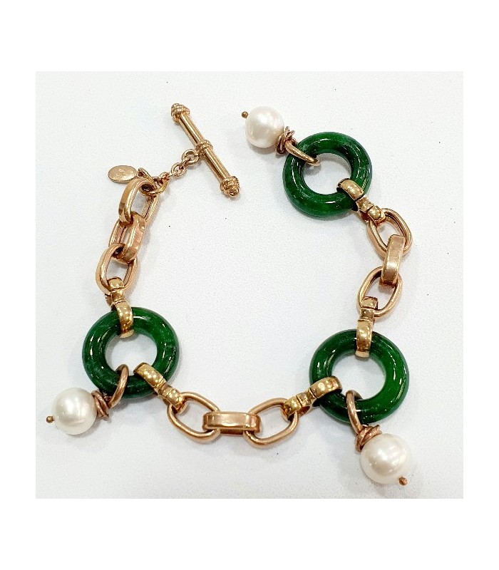 Pulsera en Plata de Ley 925mls chapado oro rosa con jade y perlas de agua dulce - VANTO - BR2403AG